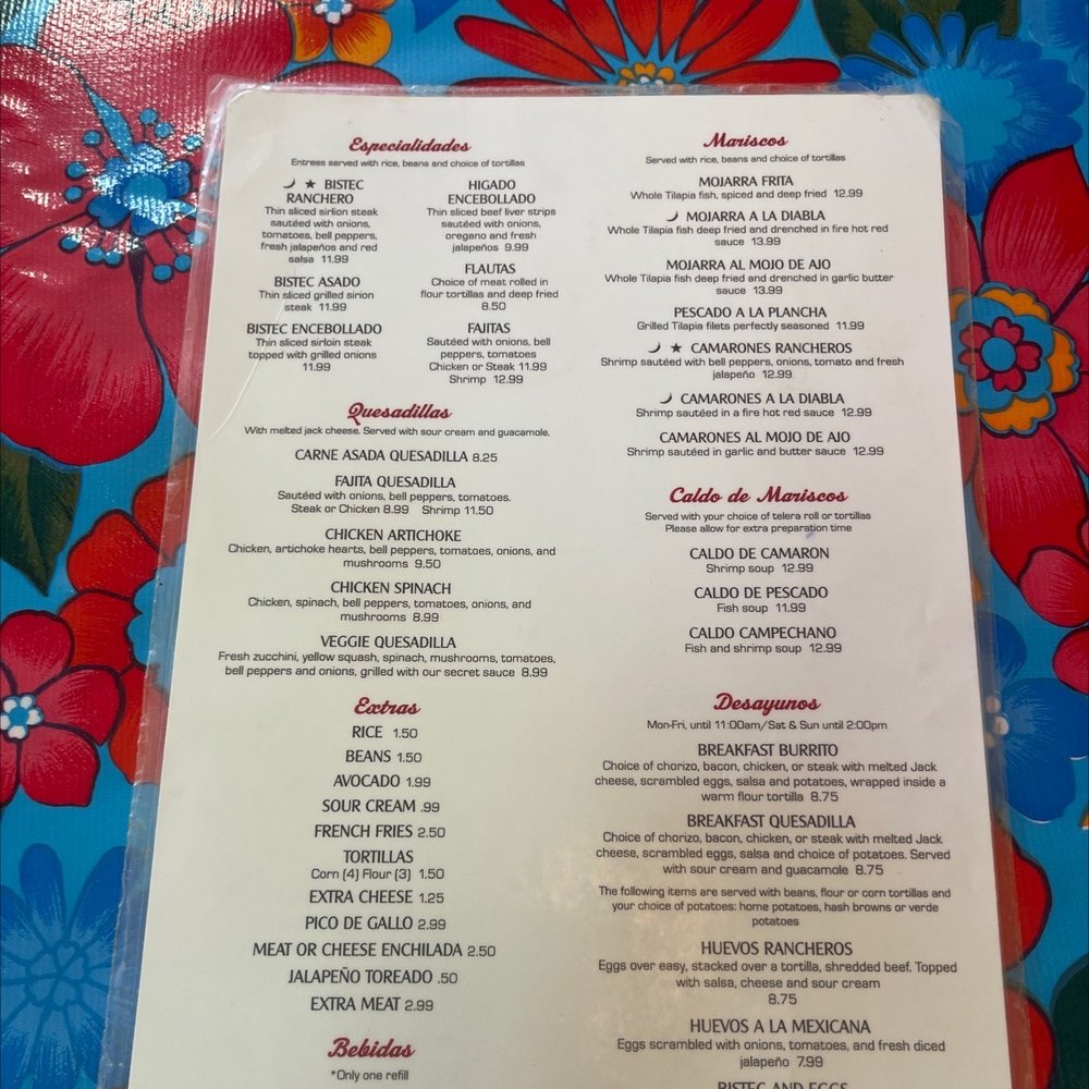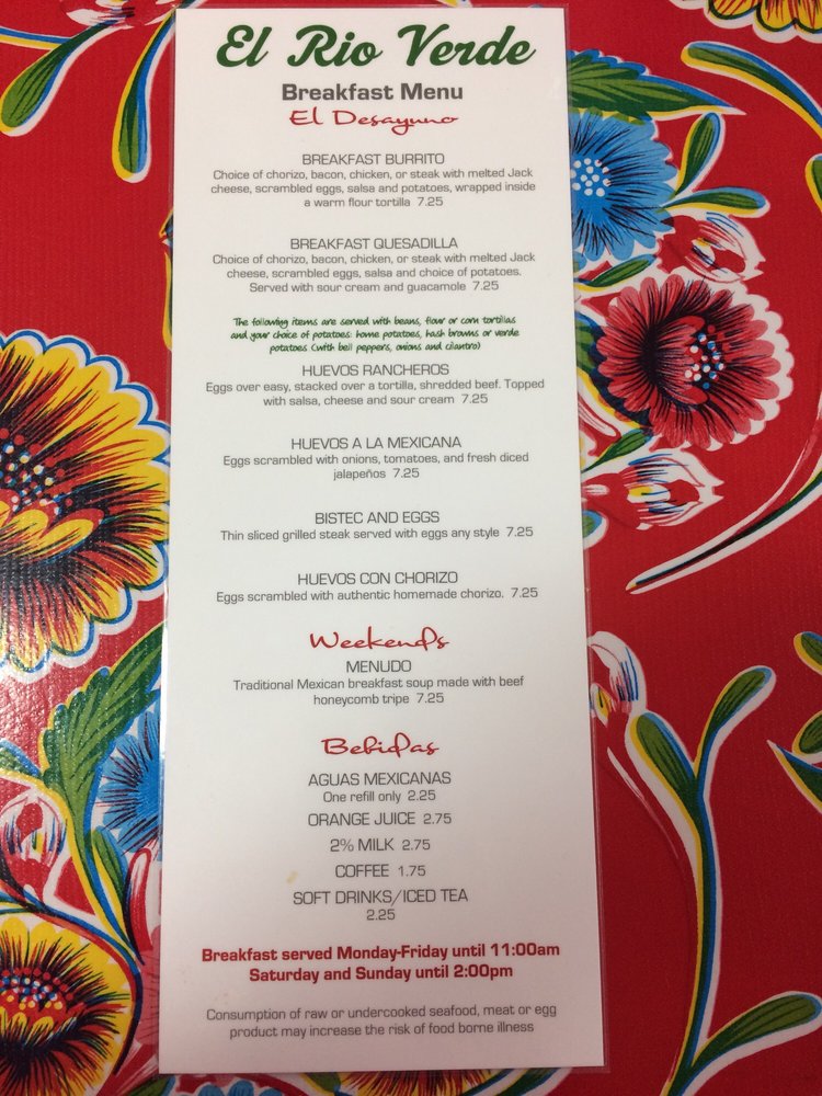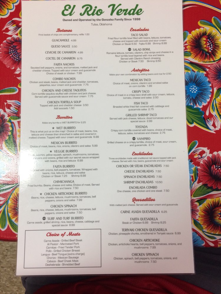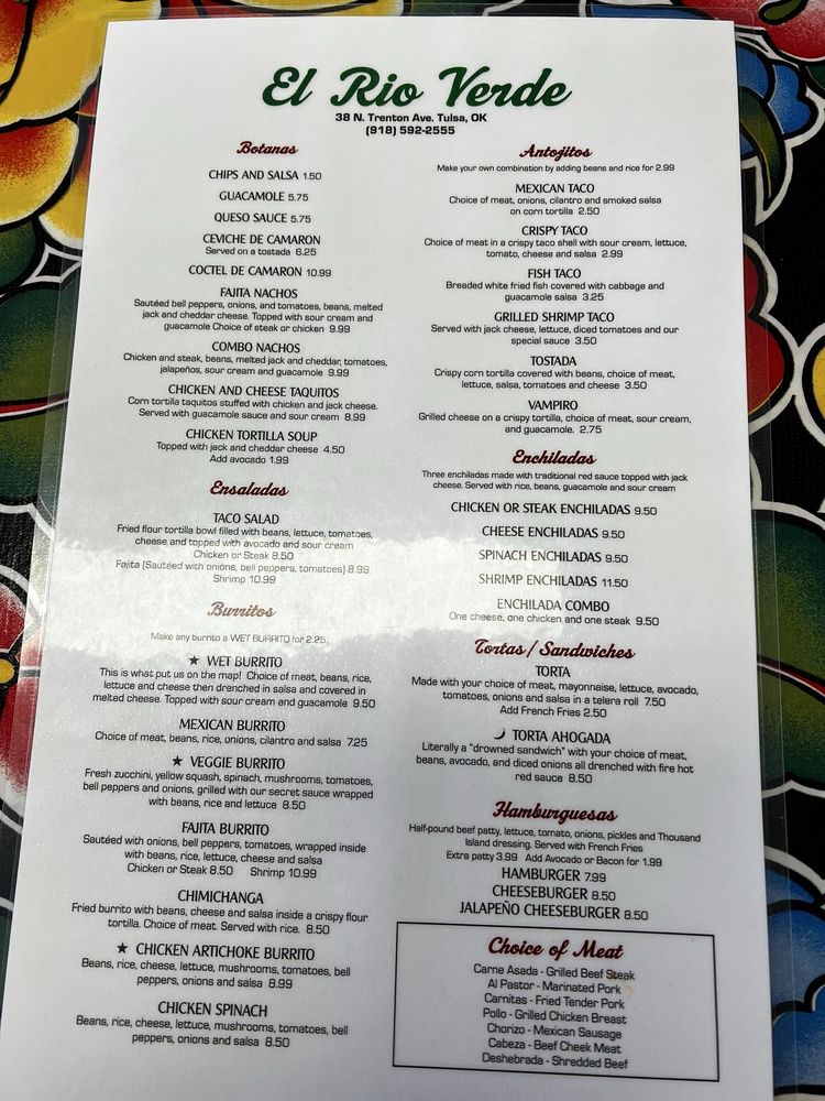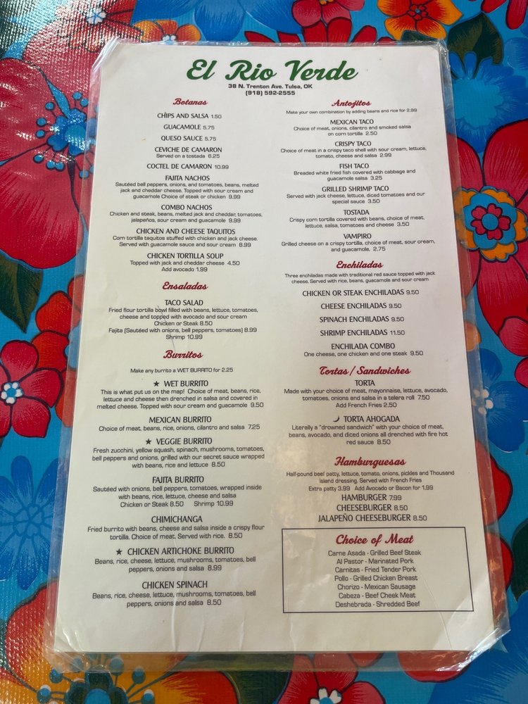 El Rio Verde, a Mexican restaurant located in Tulsa, OK, offers a diverse menu with options for all types of diners. From breakfast dishes like Bistec and Eggs to savory Especialidades like Bistec Asado and Chimichanga, the flavors are authentic and satisfying. The Mariscos section features seafood delights such as Camarones a la Diabla and Mojarra Frita, showcasing the restaurant's versatility. Customers praise the cozy atmosphere and friendly service, making it a hidden gem worth visiting. Don't miss out on the signature Wet Burrito or classic Mexican tacos, as they receive rave reviews for their taste and generous portions. Whether you're a fan of traditional Mexican cuisine or looking to try something new, El Rio Verde promises a memorable dining experience with every visit.